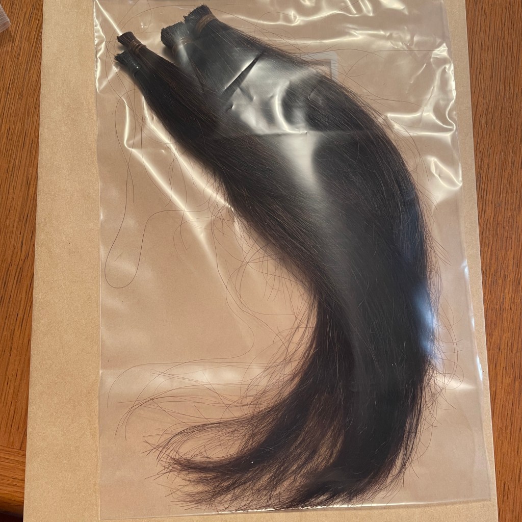 女の子用のウィッグは、40cmや50cm以上といった長さの髪の毛が必要です。50cm以上の髪の毛が不足しています。