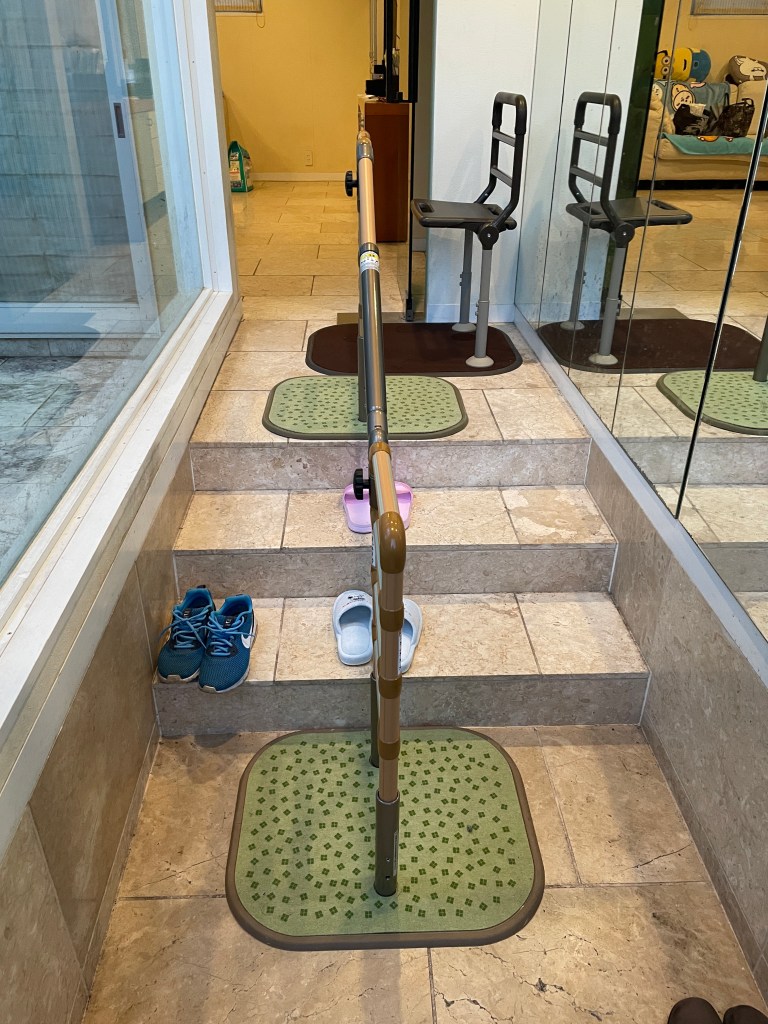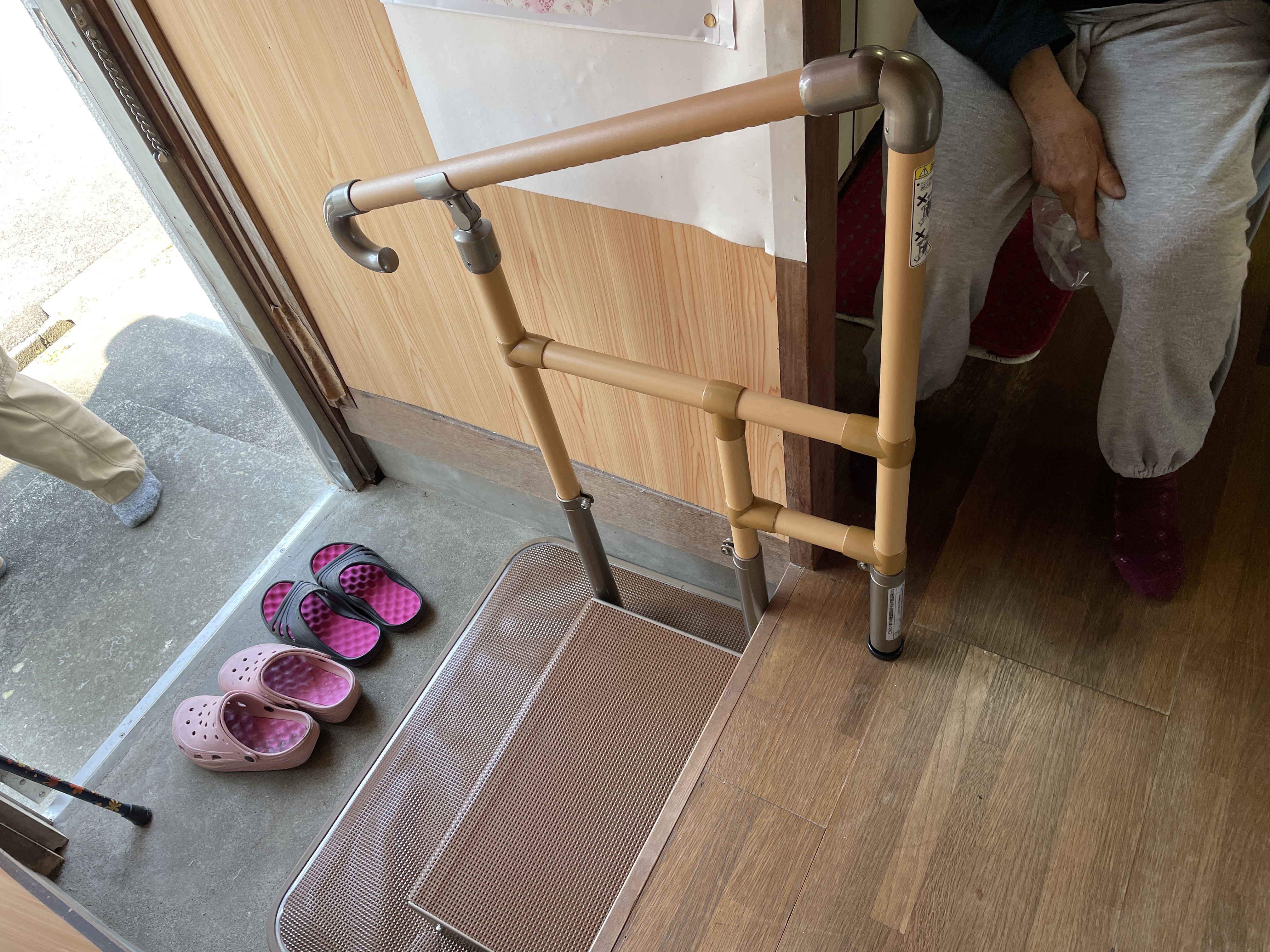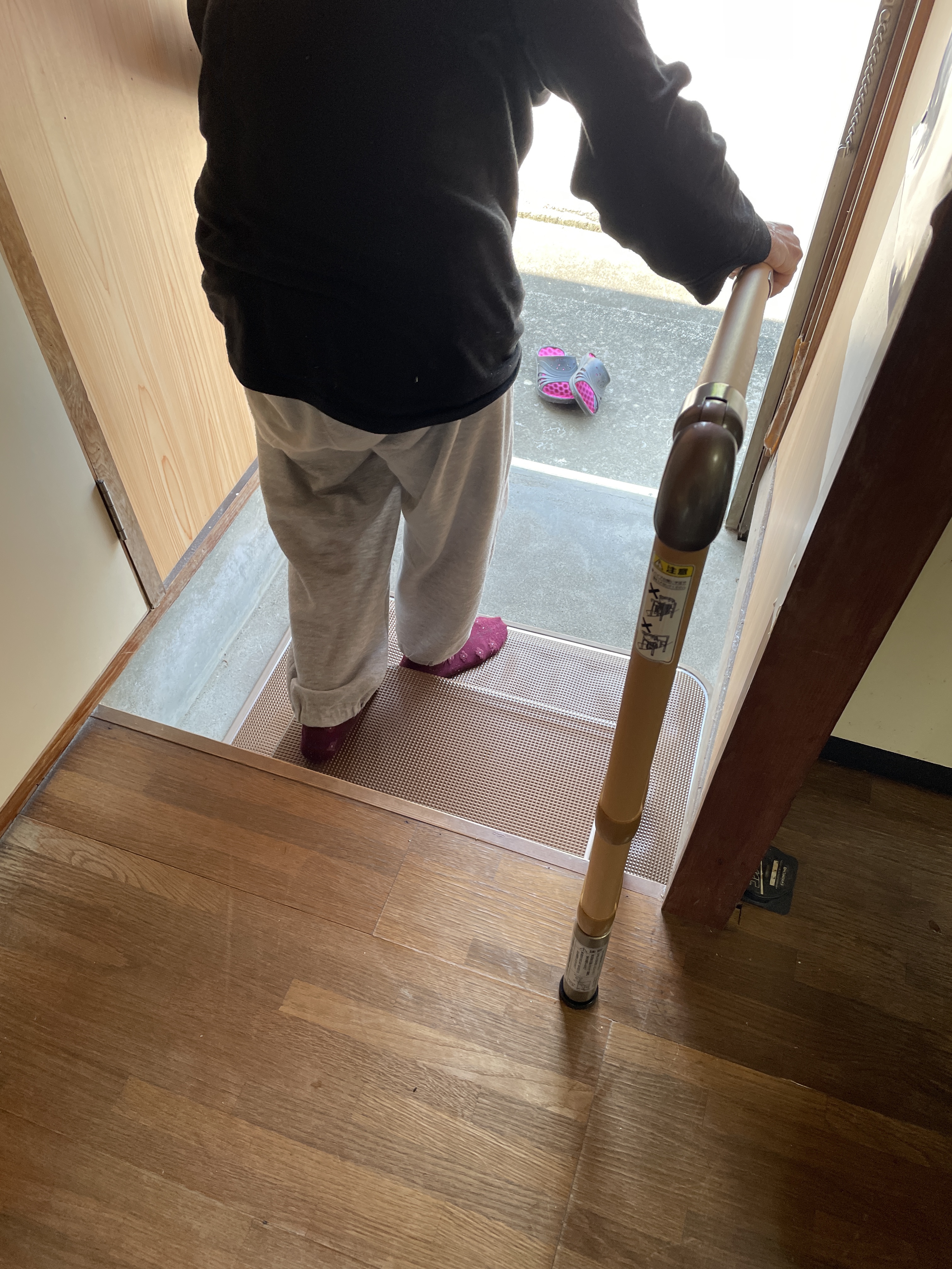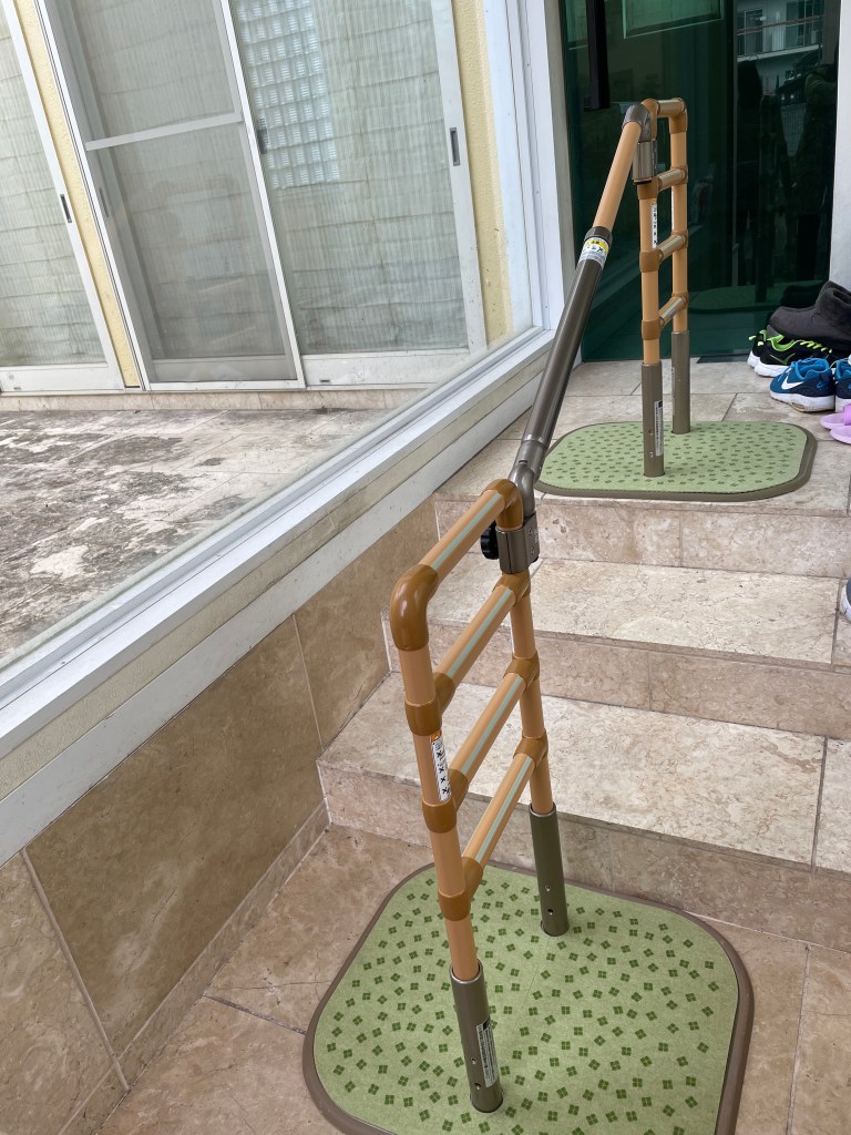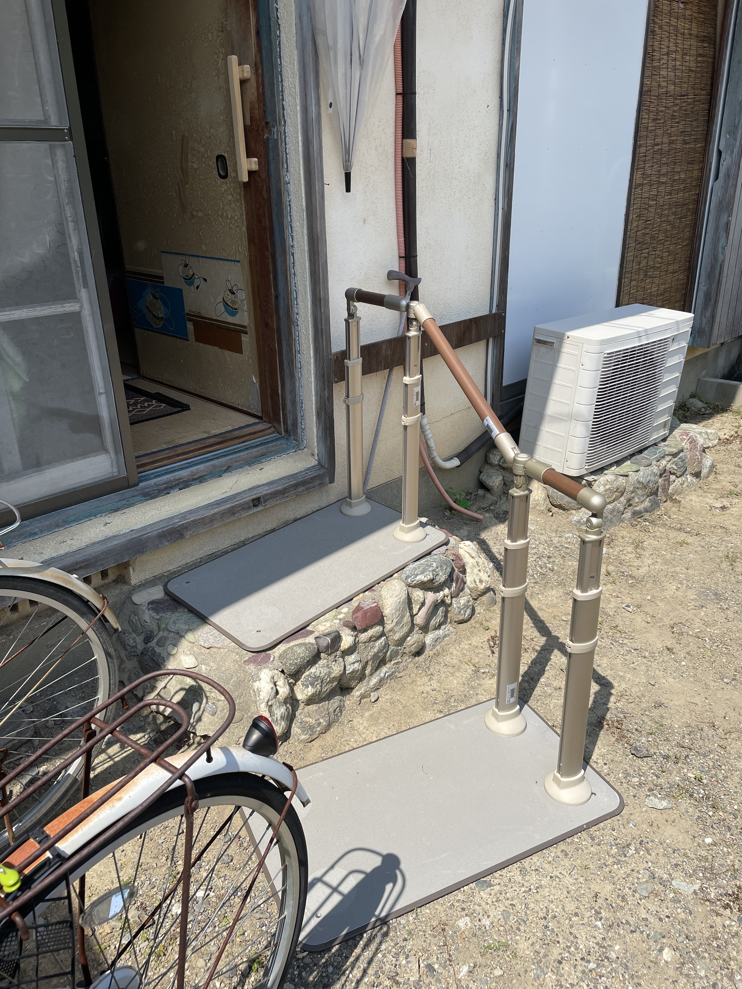 玄関や勝手口、手すりの必要な場所に置くタイプの手すりを設置してみました。